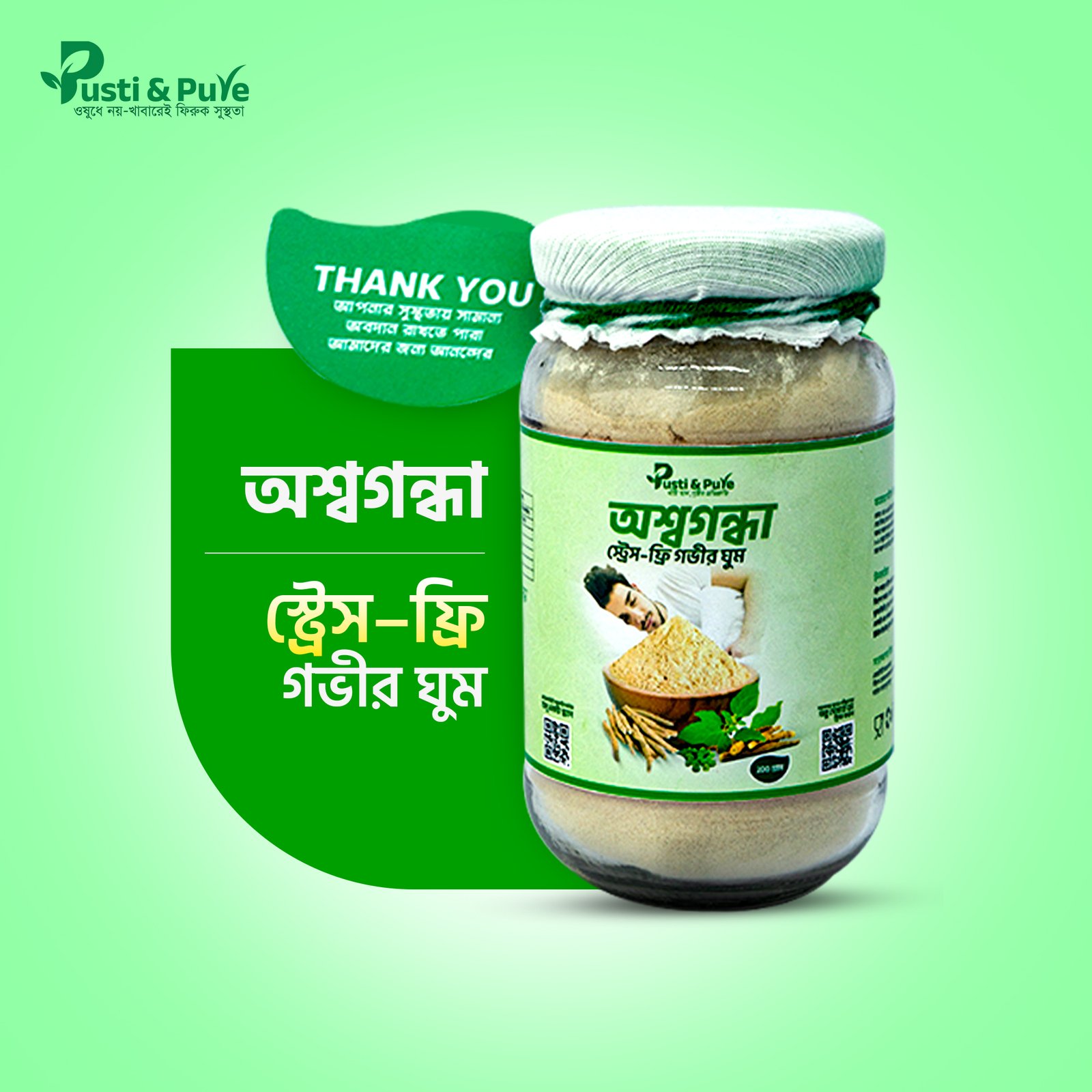 - অশ্বগন্ধা পাউডার আধুনিক জীবনের চাপ, উদ্বেগ, ঘুমের সমস্যা ও শারীরিক দুর্বলতা দূর করতে সবচেয়ে কার্যকরী আয়ুর্বেদিক ভেষজ।