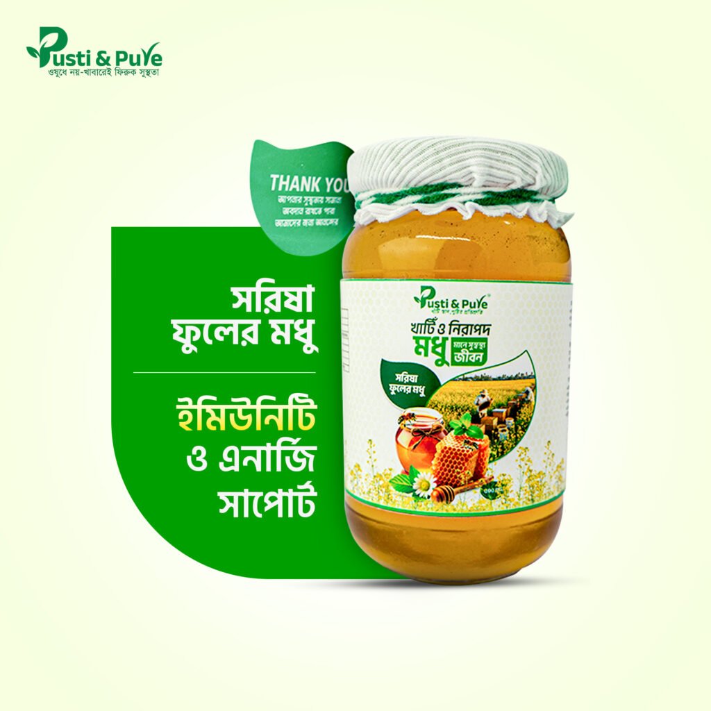 - গভীর মিষ্টি স্বাদ : সরিষা ফুলের মধু থেকে তৈরি; স্বাদ অধিক মিষ্ট, ঘ্রাণ ঝাঁঝালো ও অনন্য মজাদার।