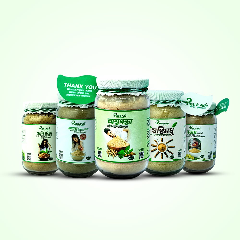- প্রাকৃতিক উপাদান: চিয়া সিড, ইসবগুল, হিমালয়ান পিংক সল্ট, ক্রিস্টাল হানি